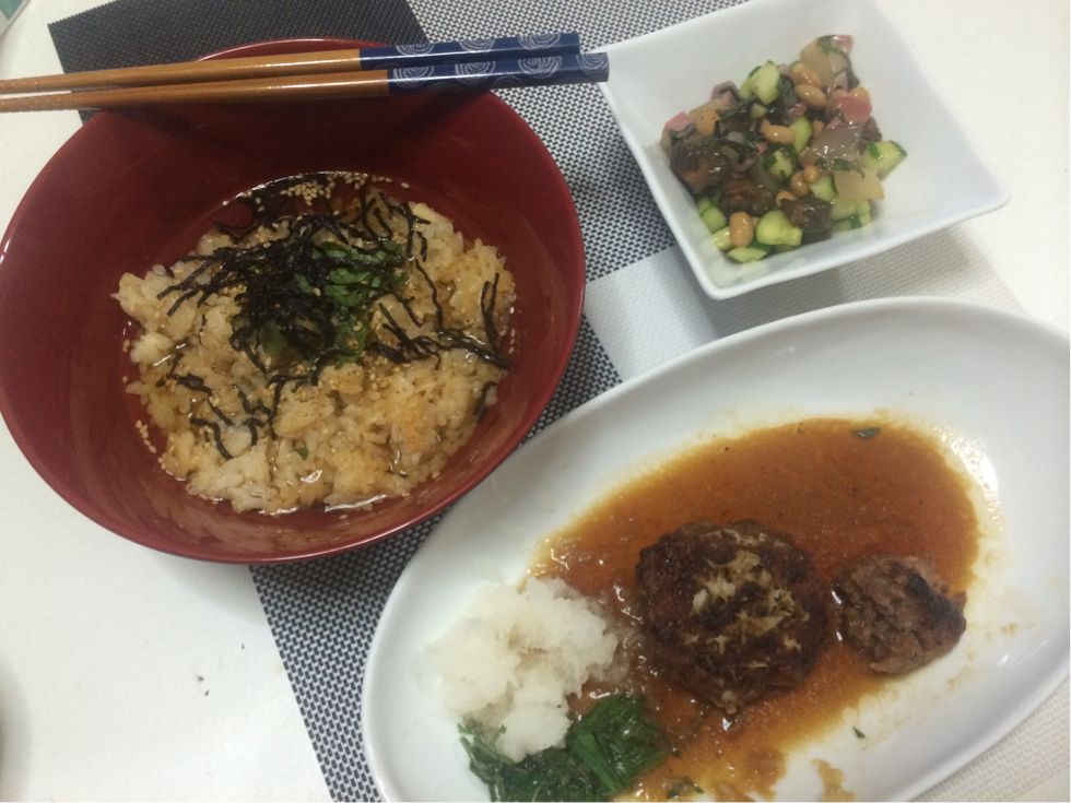 鯛飯と和風ハンバーグと
