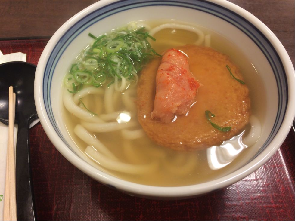 福岡空港で明太うどんって