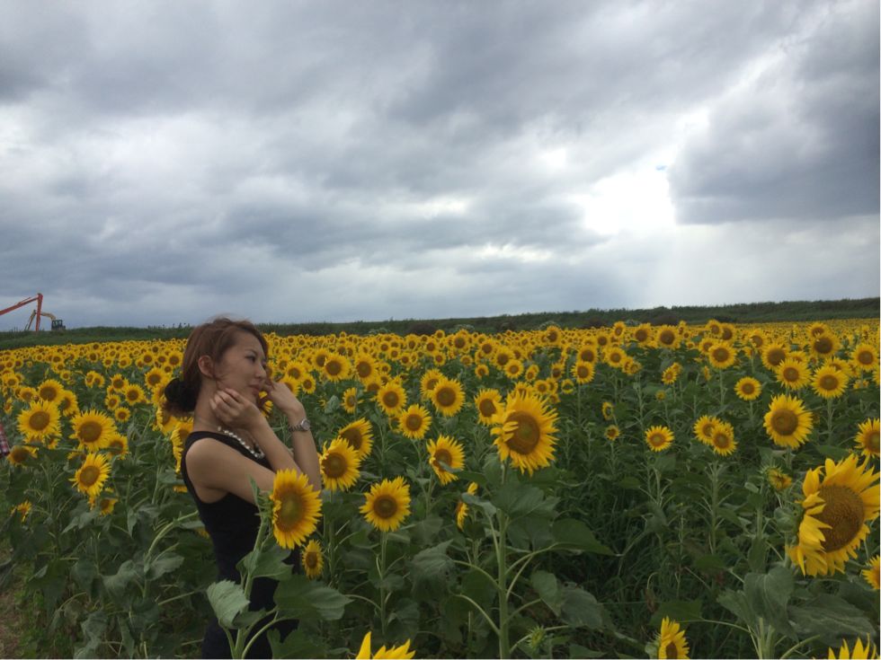 ヒマワリに夢中なお母ちゃんを盗撮(笑)