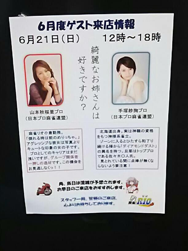 麻雀RIO小倉店常勤プロです:-) 麻雀大好き^3^♪ 毎日の些細な事をちまちま更新。 Twitter@SiorixxxMj